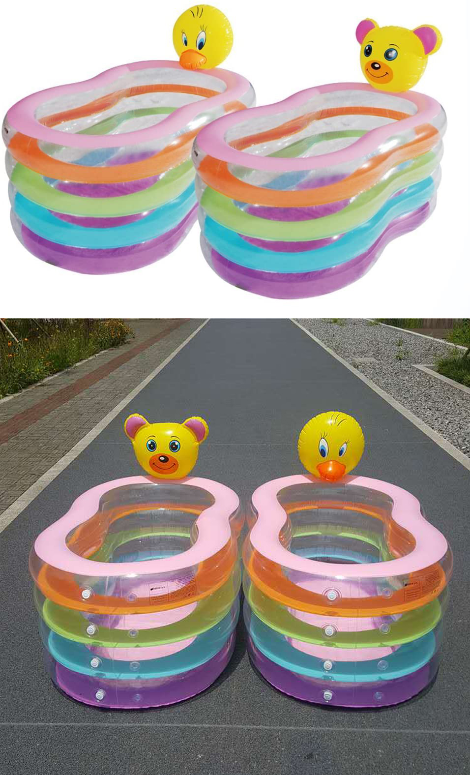 | รายละเอียดสินค้า | 🍑สระน้ำเป่าลม รูปสัตว์ Inflatable Intime Rainbow Splayed Pool🍑 🍑วัสดุ PVC  🍑สี: รุ้ง 🍑มี 2 ลาย เป็ด,หมี 🍑ขนาดของอ่างอาบน้ำ: 165*106*75cm 🍑น้ำหนักรวม: 2.5 กิโลกรัม   |